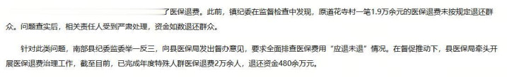 南充有个村民,叫李志和,收到了一笔1.9万多元的医保退费。这笔钱本来是村里该退给群众的,一直卡在账上没人管。镇纪委发现后,不光处理了责任人,还推动全县排查,最后退了2万多人,总共480多万。